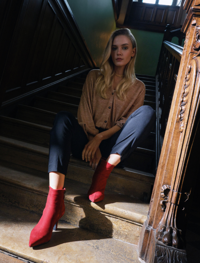 Осень: закрытая обувь из кожи или замши, ботильоны, челси. Цвета — бордовый, горчичный, зеленый.